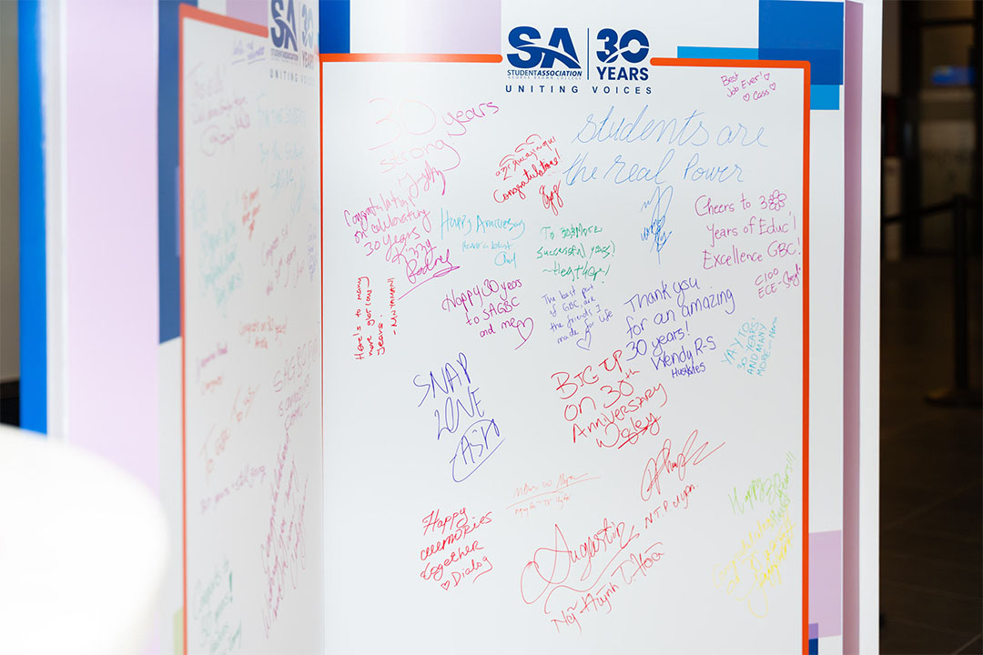 A special gala event was hosted at Waterfront campus celebrating the last 30 years of student government at George Brown College. This memorable evening featured inspiring speeches from past and current leaders, highlighting our journey and achievements. Guests enjoyed an exhibition showcasing major milestones from the last three decades, reflecting on the dedication and hard work that have fuelled success. The celebration was a heartfelt thank you to everyone who has contributed to our organization’s growth and impact over the past 30 years. We look forward to many more years of making a difference together!